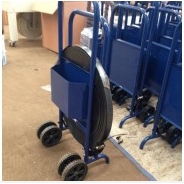帶盤車是捆扎的一種輔助性機械,利用帶盤車的固定裝置,在打包貨物時,可以將打包帶裝入帶盤車中,方便移動作業,且可以確保在捆扎過程中不會出現打包帶散亂的情況。