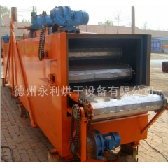 鏈板烘干機:帶式干燥機是一種批量、連續式制造加工的干燥設備,主要加熱方式有燃煤加熱,電加熱、蒸汽加熱、熱風加熱。其主要原理是將物料均勻的平鋪在鏈板帶上,鏈板采用孔徑3mm-8mm的不銹鋼帶,由傳動裝置拖動在干燥機內往返移動,熱風在物料間穿流而過,水蒸氣從排濕孔中排出,從而達到干燥的目的,箱體長度由標準段組合而成,為了節約場地,可將烘干機制成多層式.