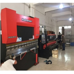 WC67K系列折彎機說明: 一、整機主要性能特點: WC67K系列液壓板料折彎機可配置多種型號專用數控系統:DA41、E21+、MD20等;具有多工步編程功能,能夠實現多步程序自動運行、連續定位,實現后擋料及滑塊位置自動精確調節;折彎計數, 實時顯示加工數量,斷電記憶后擋料滑塊位置、程序及參數;后擋料采用進口滾珠絲杠和直線導軌,確保了后擋料的定位精度,機器加工精度更高。 1、機架采用全鋼整體焊接結構,通過正火及高頻振動消除內應力,保證機床的整體精度,有極佳的剛度,有極好 的抗扭曲、抗傾斜能力。加厚的工作臺板、加厚的滑塊,使整機具有很高的剛性,因此折彎時滑塊、工作臺變形極 小,工件具有極好的直線度和角度一致性。 2、參照德國DIN55222T2-80標準設計。 3、液壓系統采用集成式控制系統,減少管路安裝,采用進口密封圈,提高了機床的工作穩定性,外形美觀簡潔。 4、機床的主油缸活塞采用了航天技術-表面鎳磷處理,其硬度可達HRC60以上,與活塞相對運動的導套采用了有 自身潤滑性的鋅基耐磨合金,可使油缸長期處于良好的工作狀態。 5、采用扭軸同步,機械擋塊,可靠、經濟、精度高。 6、后擋料距離、上滑塊行程由數控系統自動調節,亦可手動調節方便操作。 7、上模配有繞度補償機構。 二、數控系統功能: 臺灣臺達觸摸屏中文數控系統(或者荷蘭Delem數控系統): 1、具有單向和雙向定位功能,能有效消除絲杠隙。 2、具有退讓選料功能,避免擋料裝置與工件的干涉,減少磨損,提高定位精度。 3、具有自動或手動搜索參考點功能。具有斷電位置記憶功能,對參數、位置及程序進行現場保護。 4、具有多步加工編程功能,可實現多步動運行,完成多工步零件一次性加工,提高制造加工效率。 5、具有一軸伺服電機自動控制滑塊的上下行程調節,另一軸伺服電機控制后擋料。 三、主要配置: 1、油缸的主要密封件由日本華爾卡公司制造加工。 2、電器箱內主要件由法國施耐德制造加工。 3、液壓系統全部采用插裝閥控制,液壓主原件采用德國HOERBIGER公司 4、液壓泵采用航天標準低噪音內嚙合齒輪泵。 5、專精制造廠加工的油缸,成套進口的密封圈,克服漏油現象。 6、選用中國臺灣HIWIN 直線導軌和滾珠絲杠。 7、液壓系統選用德國EMB管路接頭,保證液壓系統長期運行中的穩定。