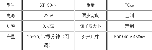 ???2、該仿手工餃子皮機除以上優點外,還可以根據制造加工需要改變壓皮速度等優點,其具體規格如下: