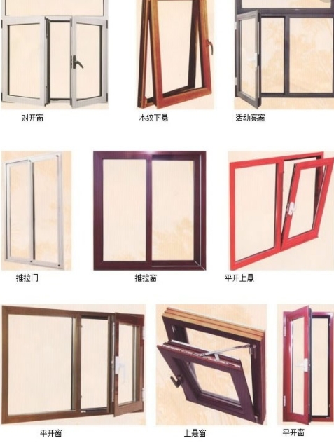 門窗:鋁合金門窗、木門窗、塑料門窗、混合門窗、法式門窗、復合材料門窗、百葉窗折迭門、自動門、滑動門、防盜門、推拉門、卷簾門、遙控門、防火門、工業門等。