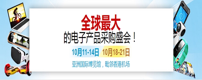 展會第二期,即移動電子產(chǎn)品展,將于10月18-21日舉行,展示2,700個展位的智能手機、平板電腦、可穿戴產(chǎn)品及配件等 – 包括300家全新參展商。