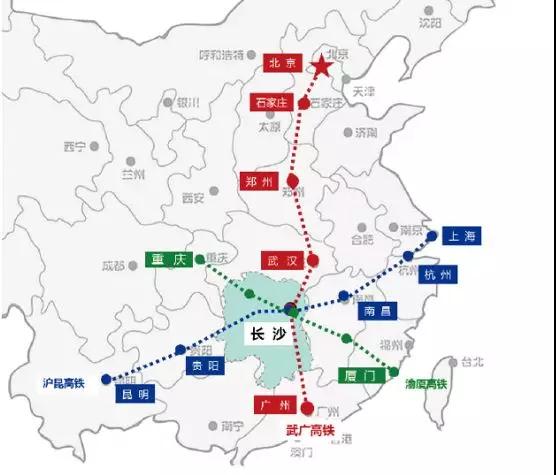 長沙高鐵新城,作為京廣、滬昆以及渝廈三大高鐵干線米字型交匯國家級交通樞紐,是湖南對外開放和長沙東部開放型經濟走廊的重要組團,也使得長沙一躍成為了國家級高鐵樞紐城市?,F在,從長沙出發乘坐高鐵,可直達的19個省會城市及直轄市:北京、天津、上海、石家莊、西安、濟南、鄭州、合肥、南京、武漢、南寧、福州、杭州、廣州、南昌、成都、重慶、貴陽、昆明;此外,新城的中低速磁懸浮實現了黃花國際機場和高鐵的無縫對接,高鐵、航空、地鐵、磁懸浮、高速及城市主干道共同構筑起了”六位一體“的立體交通網絡。