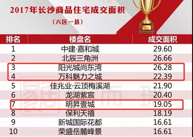在克而瑞2017年長沙商品住宅成交金額榜TOP10中,高鐵新城板塊的三大主力樓盤陽光城尚東灣、萬科魅力之城、明昇壹城均實現熱銷,分別以26.28萬方、22.39萬方、19.05萬方的總成交面積位列全市(六區一縣)樓盤排行榜的第3、4、7位。占據三席的高鐵新城板塊,其銷售總金額占TOP10強總金額的三成,市場無出其右。