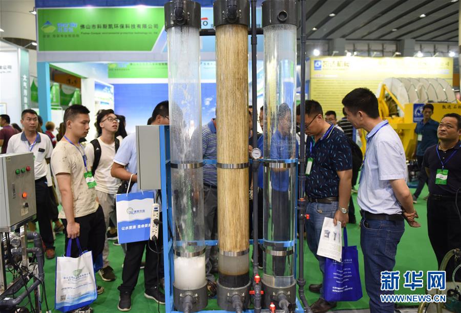 6月26日,客商在展館里參觀一臺(tái)應(yīng)用超濾膜的污水處理系統(tǒng)。當(dāng)日,第12屆中國廣州國際環(huán)保產(chǎn)業(yè)博覽會(huì)在廣州琶洲會(huì)展中心開幕。據(jù)了解,本屆展會(huì)共有600多家企業(yè)到會(huì)參展。 新華社