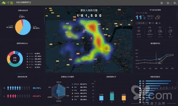 為了實時了解場館內游客情況,本次西博會與旅游大數據管理平臺“個旅”合作,館內的實時游客數,性別、年齡段、來源地等多維度用戶畫像數據,以及客流分布熱力圖等均可通過個旅可視化數據大屏呈現。