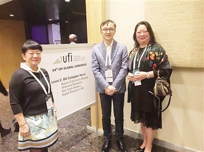 圖為國際展覽業(yè)協(xié)會(UFI)第84屆年會現(xiàn)場。(中)為上海萬耀企龍展覽有限公司總裁仲剛