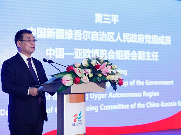 黃三平在致辭中指出,新疆是古絲路的重要通道,古絲綢之路精神一直浸潤著這片土地。把握推進絲路發(fā)展重大機遇。中國—亞歐博覽會就是其中的重要平臺之一。目前,新疆已經(jīng)成功舉辦五屆中國—亞歐博覽會和兩屆商品貿(mào)易博覽會,累計簽訂內(nèi)聯(lián)項目超過1萬億元,對外經(jīng)貿(mào)項目300億美元,合同履約率78.5%。亞歐博覽會已成為我國與亞歐國家人員交流、經(jīng)貿(mào)往來、合作發(fā)展的重要平臺、建設(shè)絲綢之路經(jīng)濟帶的重要平臺、推動新疆與周邊國家合作的重要渠道、展示新疆形象的重要窗口,源源不斷的為新疆經(jīng)濟社會發(fā)展持續(xù)注入新活力、增添新力量、激發(fā)新動力。 在博覽會的影響下,在“一帶一路”倡議提出4年來,新疆積極對接沿線國家,落實政策溝通,將地區(qū)發(fā)展規(guī)劃與周邊國家發(fā)展戰(zhàn)略有效銜接,制定推進區(qū)域合作的規(guī)劃和措施。著力打造交通樞紐中心,加速設(shè)施聯(lián)通。以交通通道、能源通道、信息通道“三大通道”建設(shè)為重點,著力提升基礎(chǔ)設(shè)施聯(lián)通水平;著力打造商貿(mào)物流中心,推進貿(mào)易暢通;著力打造區(qū)域金融中心,助力資金融通。有序推進金融創(chuàng)新。