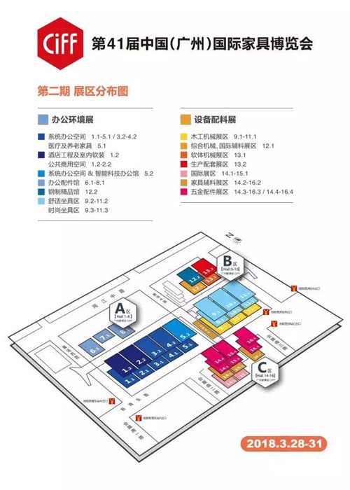 同時(shí),第41屆中國(guó)(廣州)家博會(huì)第一期還將全面融合民用現(xiàn)代與古典題材,歐美家具館將繼續(xù)使用B區(qū)的9.2-10.2館。