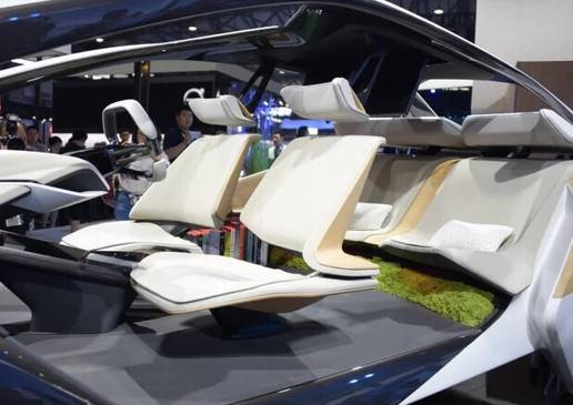 后排還有一個(gè)尺寸超大的折疊屏幕,可以實(shí)現(xiàn)與乘客的手機(jī)端互聯(lián),共享數(shù)據(jù)。不用的時(shí)候收起來可作為車內(nèi)光源。