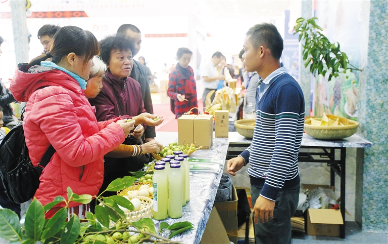 2015(第十六屆)海南國際旅游島歡樂節海南國際旅游美食博覽會現場,市民游客品嘗當地特色美食。高林 攝