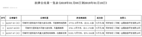 從成都市公共資源交易中心官網(wǎng)了解到,于1月18日截止掛牌的3宗共計192畝的邛崍市商服用地已成功出讓。