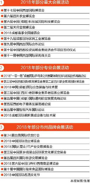 記者了解到,今年圍繞我省重點產業的發展,將舉辦農博會、科博會、金博會、糖酒會、成都車展等重大展會,并策劃應急展、老博會、2018“一帶一路”成都國際乒乓球公開賽暨體育經濟與區域合作高峰論壇、平板顯示論壇、通用航空論壇、電子商務論壇、智能汽車論壇、成都家具展、成都電子展、成都智博會、海綿城市論壇等專業會展活動。