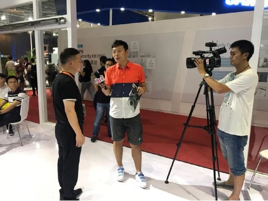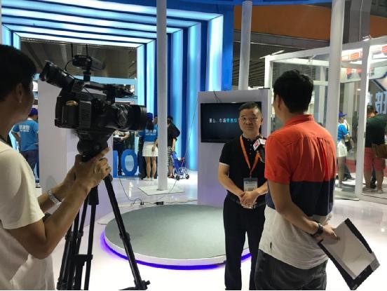 在下午時分,展會人流量達到巔峰,玻璃狗的超高人氣引來了廣州電視臺記者的采訪。記者對玻璃狗CEO 戴家保進行了對話訪談,戴總作為玻璃狗的掌門人精簡地闡述了玻璃狗此次參展的目的及目前收獲成果。