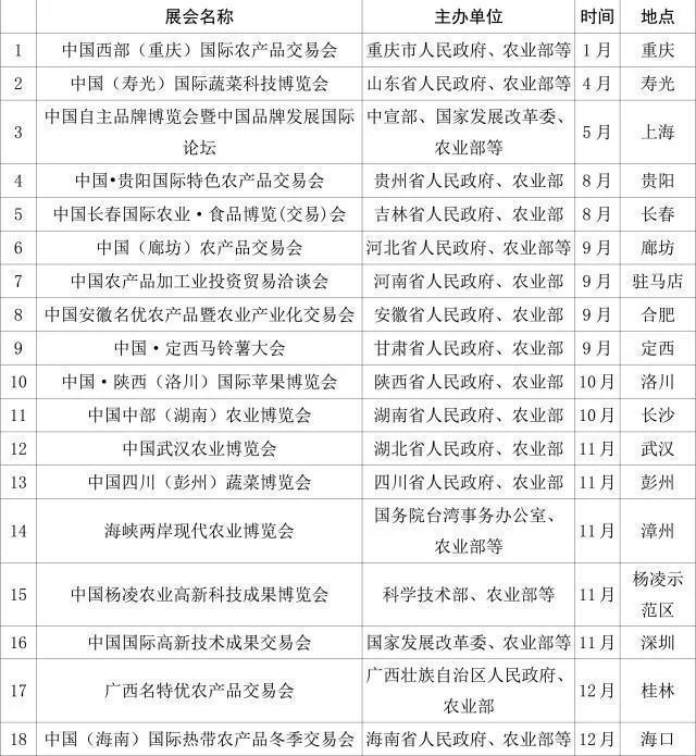 農業部辦公廳關于印發《2018年農業部展會計劃》的通知