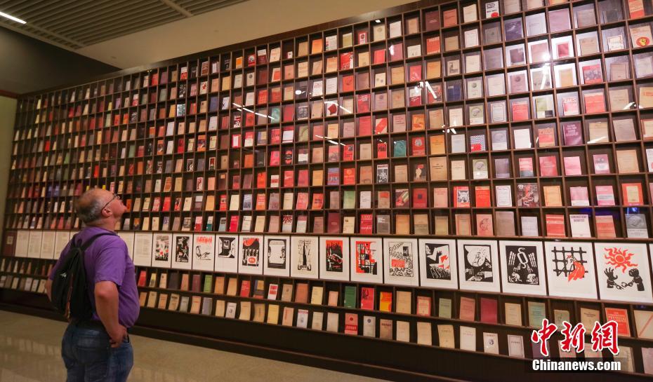 5月9日,北京“真理的力量——紀(jì)念馬克思誕辰200周年主題展覽”現(xiàn)場,一位外國觀眾被馬克思原版圖書墻吸引。該展覽展出馬克思、恩格斯、列寧手稿、筆記本及親筆簽名的書籍原版等珍貴文獻(xiàn)100余件,原版圖書900余種,圖片150余幅,馬克思主義題材美術(shù)作品70余幅,雕塑作品6尊等。 中新社記者 賈天勇 攝