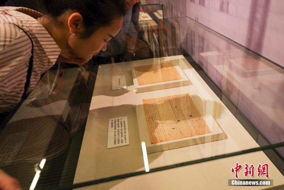 5月9日,觀眾參觀馬克思《1844年經(jīng)濟(jì)學(xué)哲學(xué)手稿》原件。該展覽展出馬克思、恩格斯、列寧手稿、筆記本及親筆簽名的書籍原版等珍貴文獻(xiàn)100余件,原版圖書900余種,圖片150余幅,馬克思主義題材美術(shù)作品70余幅,雕塑作品6尊等。 中新社記者 賈天勇 攝