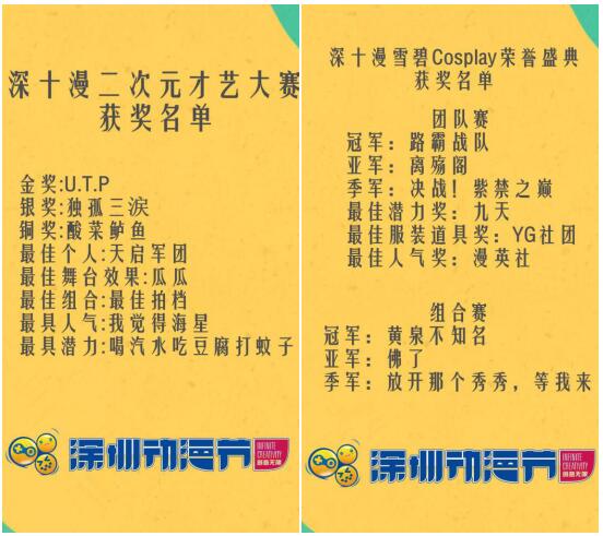 今年深十漫Cosplay榮譽盛典也是非常的精彩,從五月份落地賽一路過關斬將到深十漫的組合和社團們在深十漫現場大放異彩,拿下了心中的大獎,現場的觀眾也欣賞了一場絕妙的視聽盛宴。連評委都表示深圳動漫節CPA榮譽盛典的參賽團隊給他帶來了很大的驚喜。不僅如此,今年深十漫還首次開設了二次元才藝大賽,大家對此熱情高漲,參賽團隊爆滿,主辦方特意增加三場落地賽。讓人驚嘆是參賽選手的實力,每一場比賽都給觀眾帶來新的震撼。