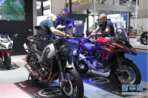采購商在第124屆廣交會上選購摩托車。 新華社記者 梁旭 攝
