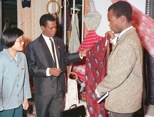 這是貿易代表在1966年春季中國出口商品交易會上的紡織品陳列廳參觀(資料照片)。 新華社發