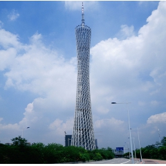 廣州塔建筑總高度600米,其中主塔體高450米,天線桅桿高150米,具有結構超高、造型奇特、形體復雜,用鋼量最多的特點。它的外框筒由24根鋼柱和46個鋼橢圓環交叉構成,形成鏤空、開放的獨特美體,它仿佛在三維空間中扭轉變換。作為目前世界上建筑物腰身最細(最小處直徑只有30多米),施工難度最大的建筑,建設者們克服了前所未有的工程建筑難度,把一萬多個傾斜并且大小規格全部不相同的鋼構件,精確安裝成挺拔高聳的建筑經典作品,并創造了一系列建筑上的“世界之最”。