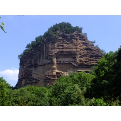 麥積山旅游景區位于甘肅省天水市麥積區,小隴山的一座孤峰,高142米,因山形似麥垛而得名。麥積山石窟始建于384-417年。存221座洞窟、10632身泥塑石雕、1300余平方米壁畫,被譽為東方雕塑藝術陳列館。
