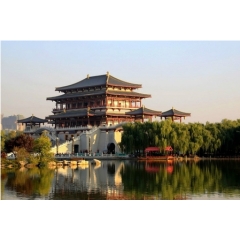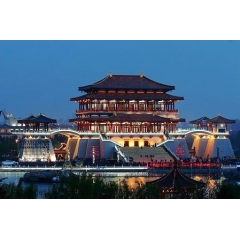 大唐芙蓉園旅游景區位于陜西省西安市,大雁塔東南側,它是在原唐代芙蓉園遺址以北,仿照唐代皇家園林式樣重新建造的,是中國第一個全方位展示盛唐風貌的大型皇家園林式文化主題公園,占地面積一千畝,其中水域面積三百畝。