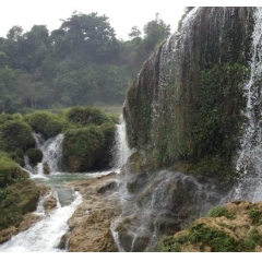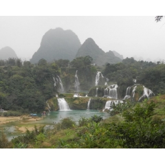德天瀑布處,白云巖位于抗侵蝕能力差的粉砂巖之上部和首先過水的上游,同時巖層產狀平緩,使得水流可較平穩(wěn)的分配在跌水陡崖面上,極易形成瀑水面比較寬闊的瀑布,例如德天瀑布等。