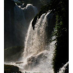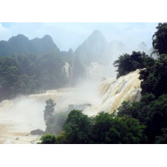 歸春河河谷天然坡降較大,自德天瀑布上游浦湯島至捻底電站流程18.93公里,水位落差190米,水力坡降達1%,并在河谷中多處形成小跌水,河水流速快,對河底的沖刷侵蝕作用極強,有利于瀑布的形成。德天瀑布陡崖最初是河流上的一處裂點,因為巖性的差異而逐漸發(fā)展成壯觀的大瀑布。