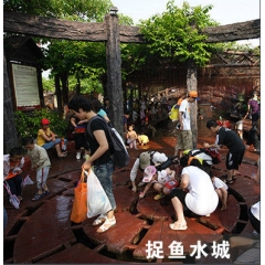 動感玩水區不但有嬉水臺、水上拓展等眾多水上項目,還有園林泳池、山洞蒸汽浴、中藥SPA、沐足等養療健身項目。此外,夢幻捉魚水城集噴泉捉魚區、云霧捉魚區、沼澤捉魚區、水簾洞捉魚區、沖浪捉魚區五大區,是大人小孩嬉戲玩耍、休閑娛樂的好地方,讓您樂而忘返。山泉美景巧妙地融合在一起,演繹至歡樂的水上世界。