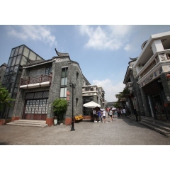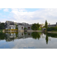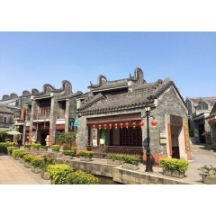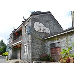 嶺南印象園是典型的嶺南傳統風格建筑群落。民居依水而建,或窄門高屋,或鑊耳高墻。悠長的青云巷、古樸的趟櫳門、精致的滿洲窗,小溪蜿蜒,池塘清澈,處處散發著嶺南水鄉的韻味。 形狀獨特的鑊耳墻又名鍋耳墻,因其形狀與菜鍋的手柄相似得名。在元明清時代,只有擁有功名的人才有此資格建造,官位大小決定鍋耳的高低。民間還有一種傳說:修鍋耳墻可以保佑子孫當官,蘊涵富貴吉祥豐衣足食。鍋耳墻后又稱為“鰲頭墻”,有“獨占鰲頭”的寓意。簡易耐用的蠔殼墻是練西村居民的日常建材。練溪村依山傍江,村民就地取材使用蠔殼建房或建圍墻。墻心采用石塊,外墻用黃泥加石灰,然后把蠔殼斜著貼上,在保持美觀的同時,又可讓雨水排流通暢。此外,蠔殼墻因其結構材料特點更具堅固耐用、冬暖夏涼、防火防臺風等優點,為村民喜愛,并成為嶺南建筑特色。祠堂是封建社會家族觀念濃厚的反映。練溪村曾生活著幾大姓氏的家族,保留下來比較典型的是霍氏大宗祠和蕭氏宗祠。這些祠堂包含了木雕、磚雕、石雕、灰塑、陶塑等傳統工藝,凝聚了眾多藝術創作者的心血,具有很高的藝術價值。