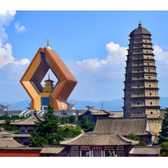 法門寺文化景區位于陜西省寶雞市扶風縣城北10公里處的法門鎮,東距西安市110千米,西距寶雞市90千米。始建于東漢末年恒靈年間,至今約有1700多年歷史,有“關中塔廟始祖”之稱,因安置釋迦牟尼佛指骨舍利而成為舉國仰望的佛教圣地。2009年5月9日,法門寺文化景區建成對外開放。