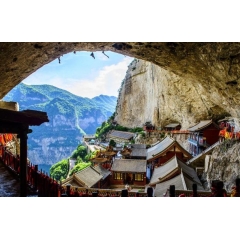 綿山起源于春秋時晉國介子推攜母隱居被焚在山上,所以綿山又名介山,綿山早在北魏之時就有寺廟建筑,唐初時已具有相當規模的佛教禪林。[1] 綿山風景名勝區的仿古建筑群風格多樣,從建筑的角度來剖析,綿山仿古建筑既取之先代建筑之長,又加上設計者和建設者的現代創意,集華夏古今之精華,構成了現代仿古建筑物的獨特風格。